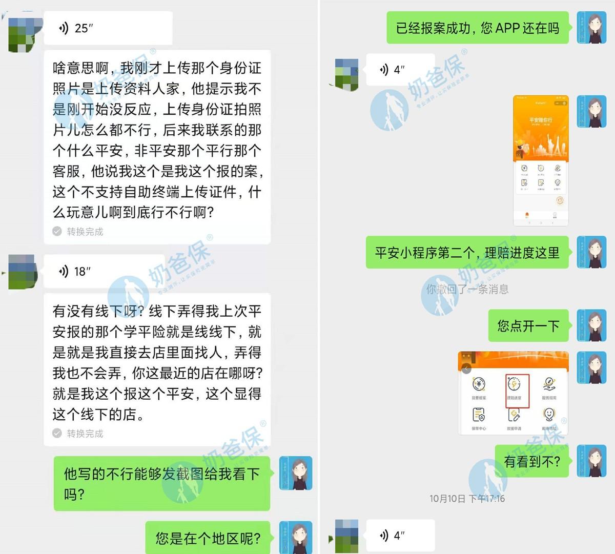 奶爸保理赔老师柒柒在了解出险原因之后,告知朱先生理赔方式,并指导他可以在平安的理赔小程序上报案。