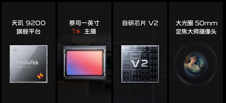 - 三款机型均搭载旗舰级处理器(骁龙8 Gen2、天玑9200)+自研芯片V2的双芯组合;