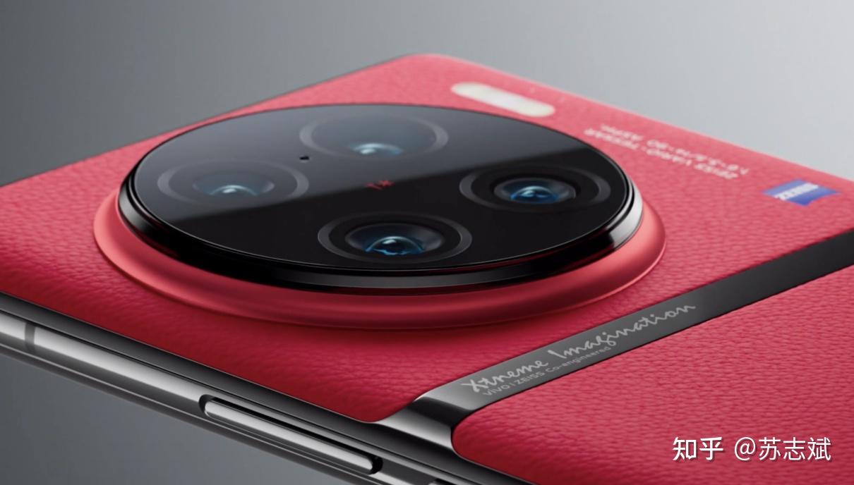 但也往往是越简练的形态,越需要成熟克制的 CMF 来配合。vivo X90 的华夏红是我最喜欢的配色。荔枝纹素皮表面分布粒面软格,与陶瓷质感的 choker 形成色彩和材质的对比,很好地互相衬托出了双方的特点。这样的撞色方案,起到了「1+1=2.5」的效果。