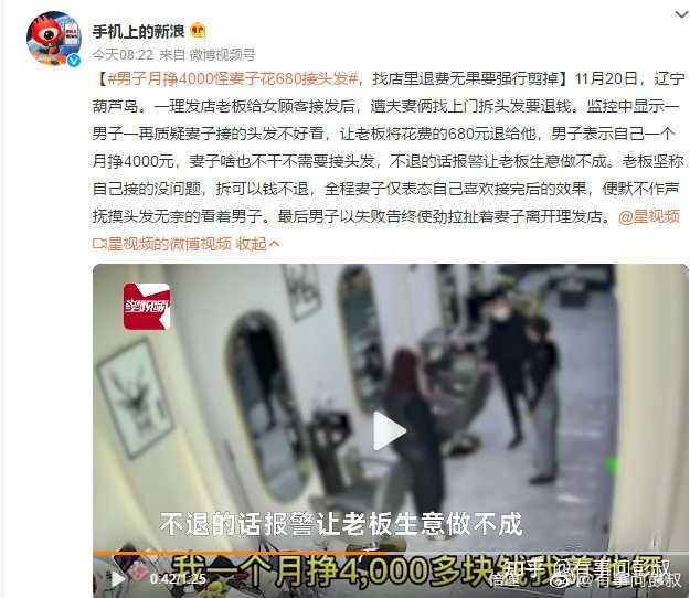 但是这男的确实也有不对,当面教子,背后训妻。钱已经花了,你找也找不回来了,两口子关起门来心平气和的谈一谈 ,你跑人理发店作一通,磕碜你媳妇就是磕碜你自己,真是光屁股推碾子。再说,这媳妇可能也很久都没舍得给自己花这么多钱了,怎么就不能偶尔取悦一下自己。可能平时带孩子啥的也挺累的 。她能花六百八接头发,有可能接头发是她一直想做没敢做的事情吧。或许接头发也是她的执念。