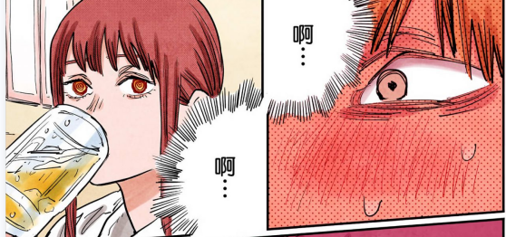 面对电次接吻场景,玛奇玛的表现漫画和动画倒是平分秋色。