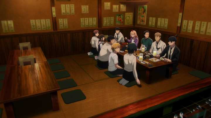 华语讨论一般认为是蕾塞篇,但是目前来讲,综合各方的看法啊,我认为在本话动画的内容,也就是“姬野呕吐”之后,《电锯人》就已经进入状态了。