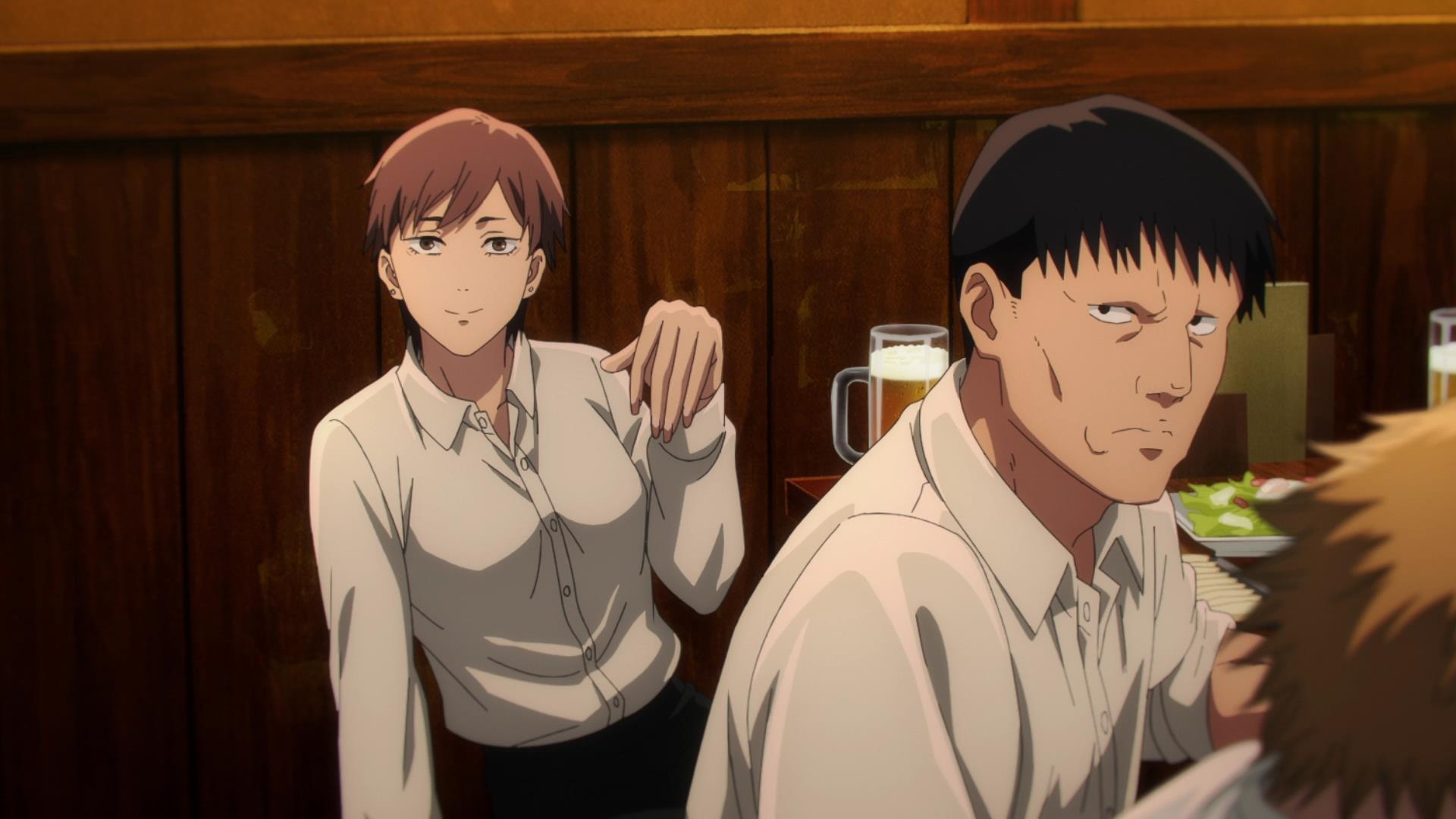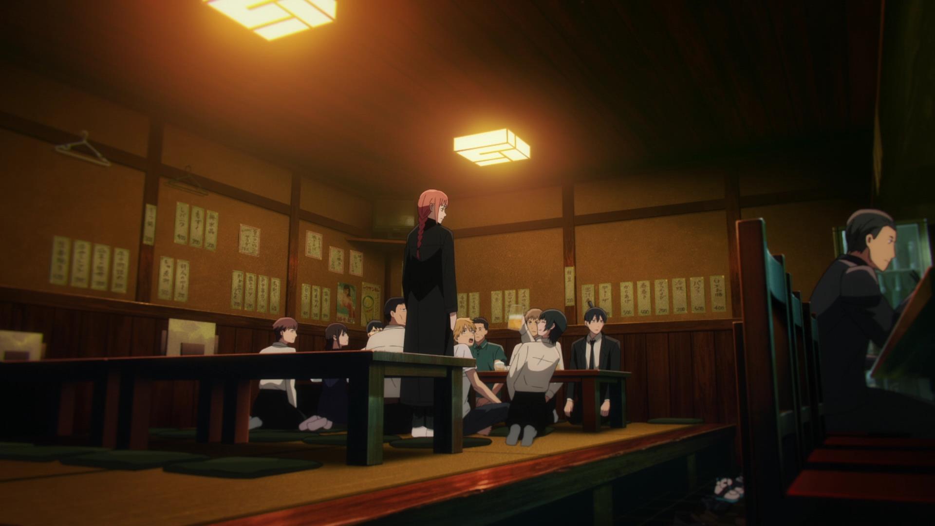 玛奇玛的换衣入场,动画里站在榻榻米上显得有点轻浮,漫画直接给单人特写隔开其他人,是单位聚餐晚到的领导登场了。
