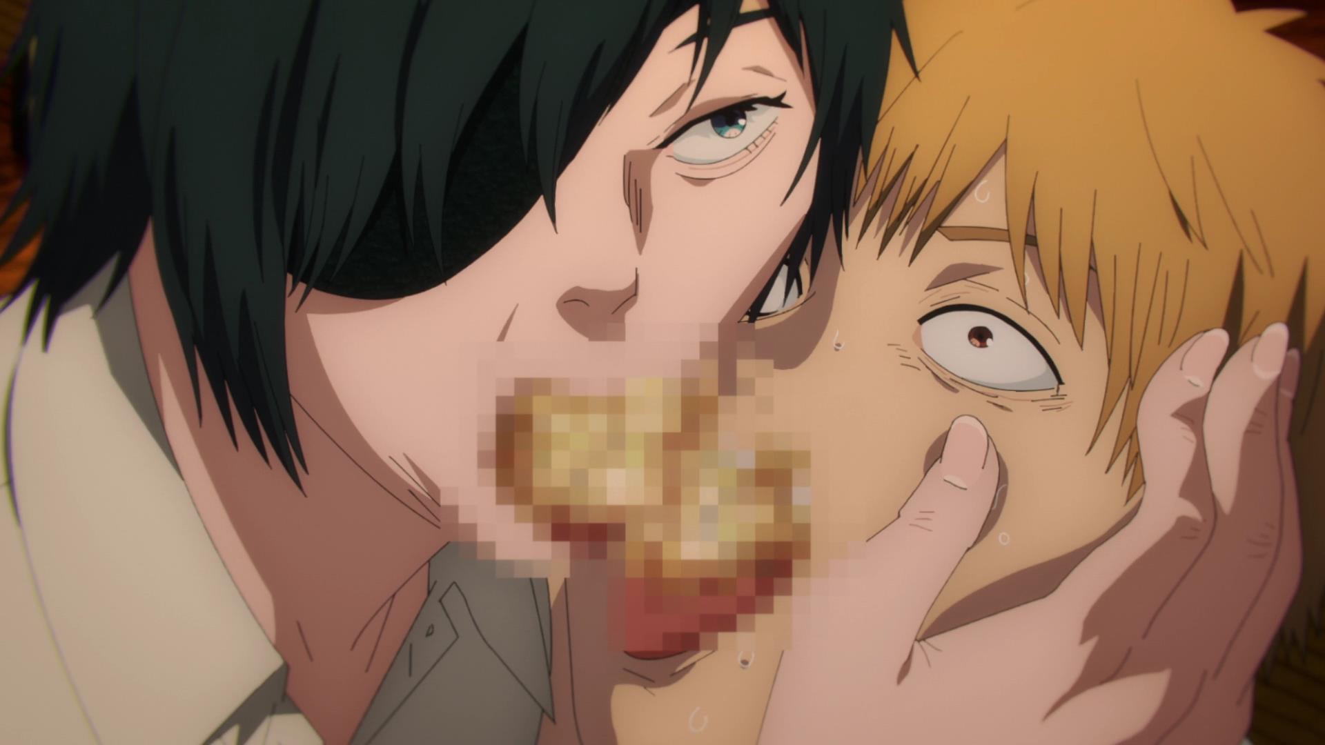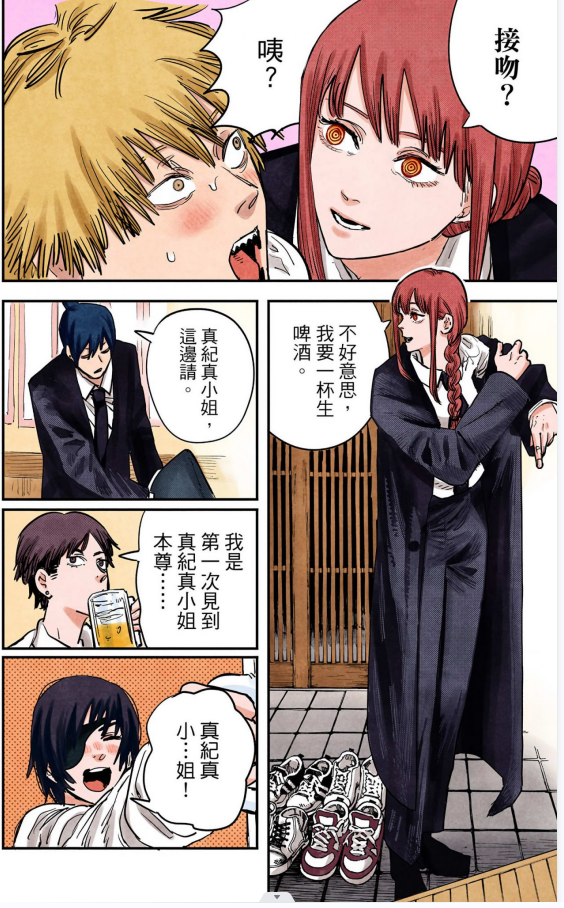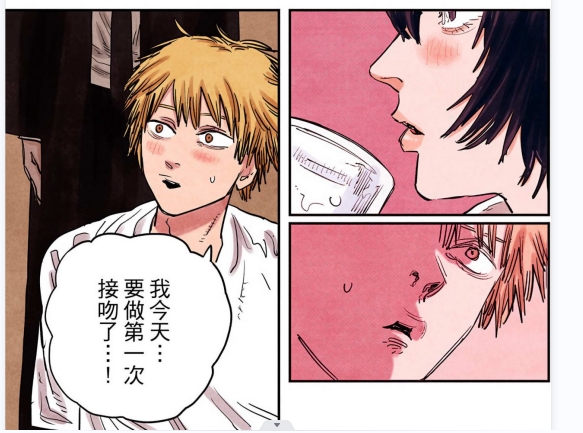 面对电次接吻场景,玛奇玛的表现漫画和动画倒是平分秋色。