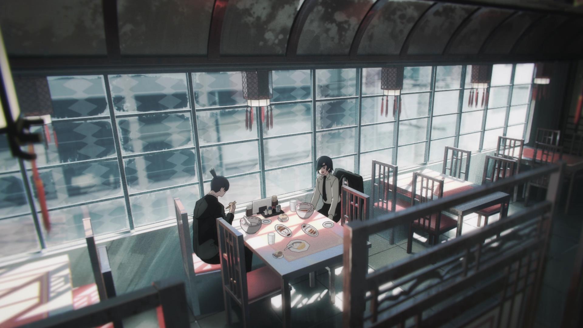 聚餐场景的光影效果,尤其是椅背,与上个世纪的动画风格已完全不同。