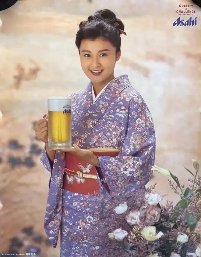 80后应该可以认出这是藤原纪香吧,1994年起担任朝日啤酒的形象代言人。