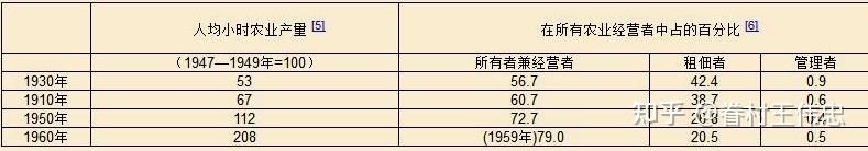 这种假设与美国的一系列资料是一致的。毫无疑问,农民成功地运用了许多新的、优良的农业要素。在竞争中所有者兼经营者无疑壮大起来了。把用于农业的“人均小时农业产量”作为现代化过程的标志是恰当的。在1910年到1930年间,这一标志只有很少增加,以1947—1949年为100,这一期间的指数只从45增加到53。但是,从1930年以来,有了以下的发展: