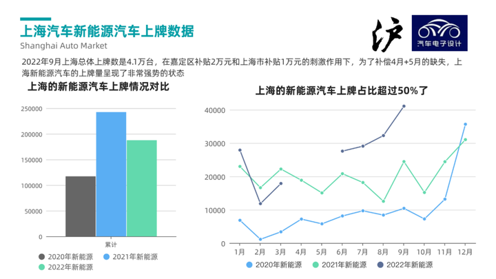 老实说,措施一出,短期内必然是会带来一定影响的。这点从上海汽车保有量上也可以看得出来:截止2022年9月,上海新能源汽车的上牌渗透率已经超过50%。而2020年的上牌渗透率是22.25%,2021年的上牌渗透率则为38.93%。(来源:汽车电子设计) 新能源汽车的上牌渗透率超过50%,意味着上海的交通压力会不断攀升。而新能源车相对于燃油车成本低,占用交通道路频率高,上海又是新能源汽车的销售重地,调整拍牌政策就在所难免了。