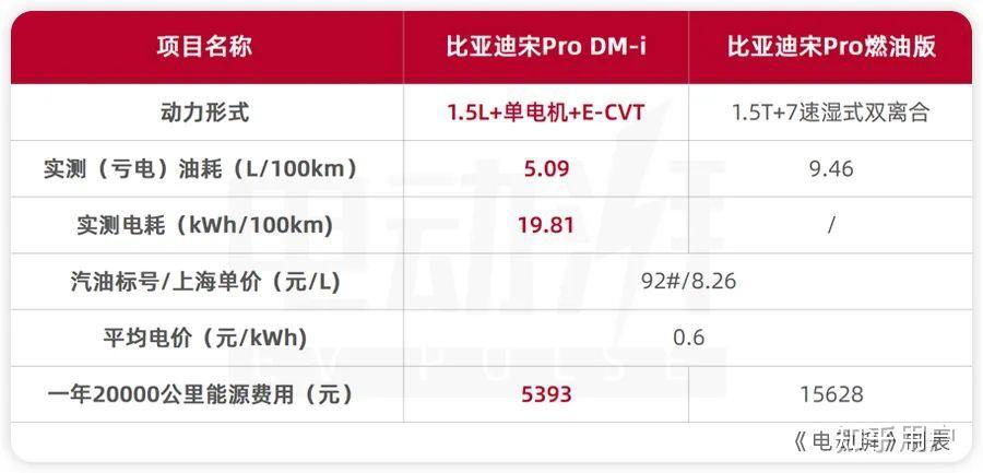 为了抛开车型变量,我们就拿比亚迪宋Pro的DM-i和燃油版进行对比,其中的百公里(亏电)油耗和电耗数据都源自某众测网站。假设一年行驶2万公里,其中比亚迪宋Pro DM-i有一半里程用电,另一半里程用油,那么它一年的能源花费为5393元。而比亚迪宋Pro燃油版一年2万公里的油费为15628元,多了大约1万元。