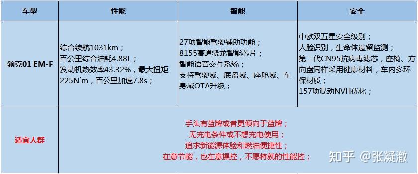 从一线终端角度出发,我用表格方式总结了一下领克01两款混动车型的特点与适用人群,如果有感兴趣的小伙伴在近期准备试驾或者订购的话,看过会更加清晰明了。