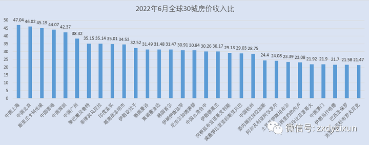《房价-3:2022年8月全国100个城市房价挂牌价,2w/平房价的城市有哪些?》以上计算方法不考虑公摊面积,考虑到国内商品房普遍公摊面积在20%-27%之间,实际我国一线城市房价收入比在60以上,为发达国家主要城市的5-6倍,数据来源于Number,实际上我们认为厦门才是房价收入比最高的城市,但是厦门经济体量较小,未被收录在数据库中,并不具有很强的代表性。