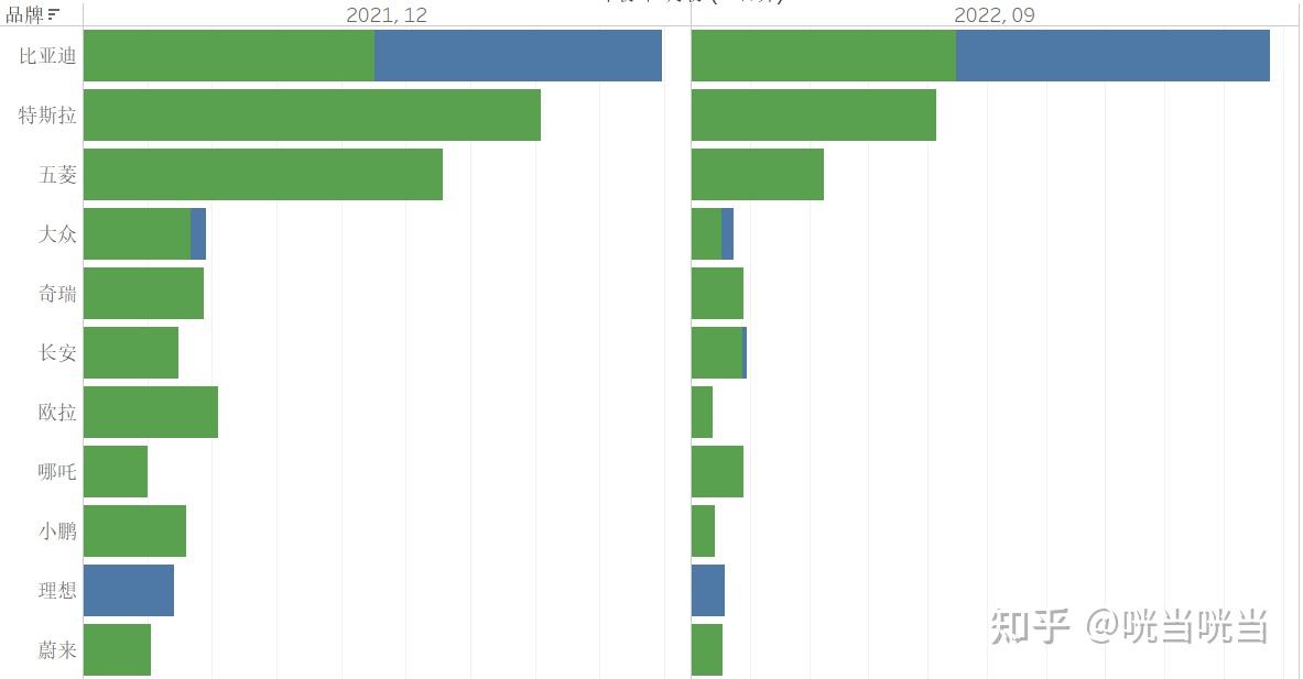 把两次降价前代表月份的品牌销量结构拉出来就明显了:比亚迪在大半年时间里,迅速拉大了跟后排新能源玩家的差距——不单单是插混在抢夺燃油车路上走强,纯电车也借助广阔的中等价位市场迅速做大(图二)。