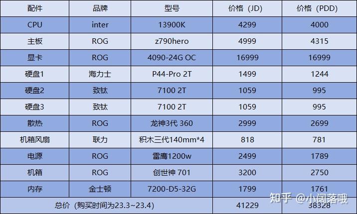 分享一下配置单(之前的有更新,换了电源、水冷、风扇。)