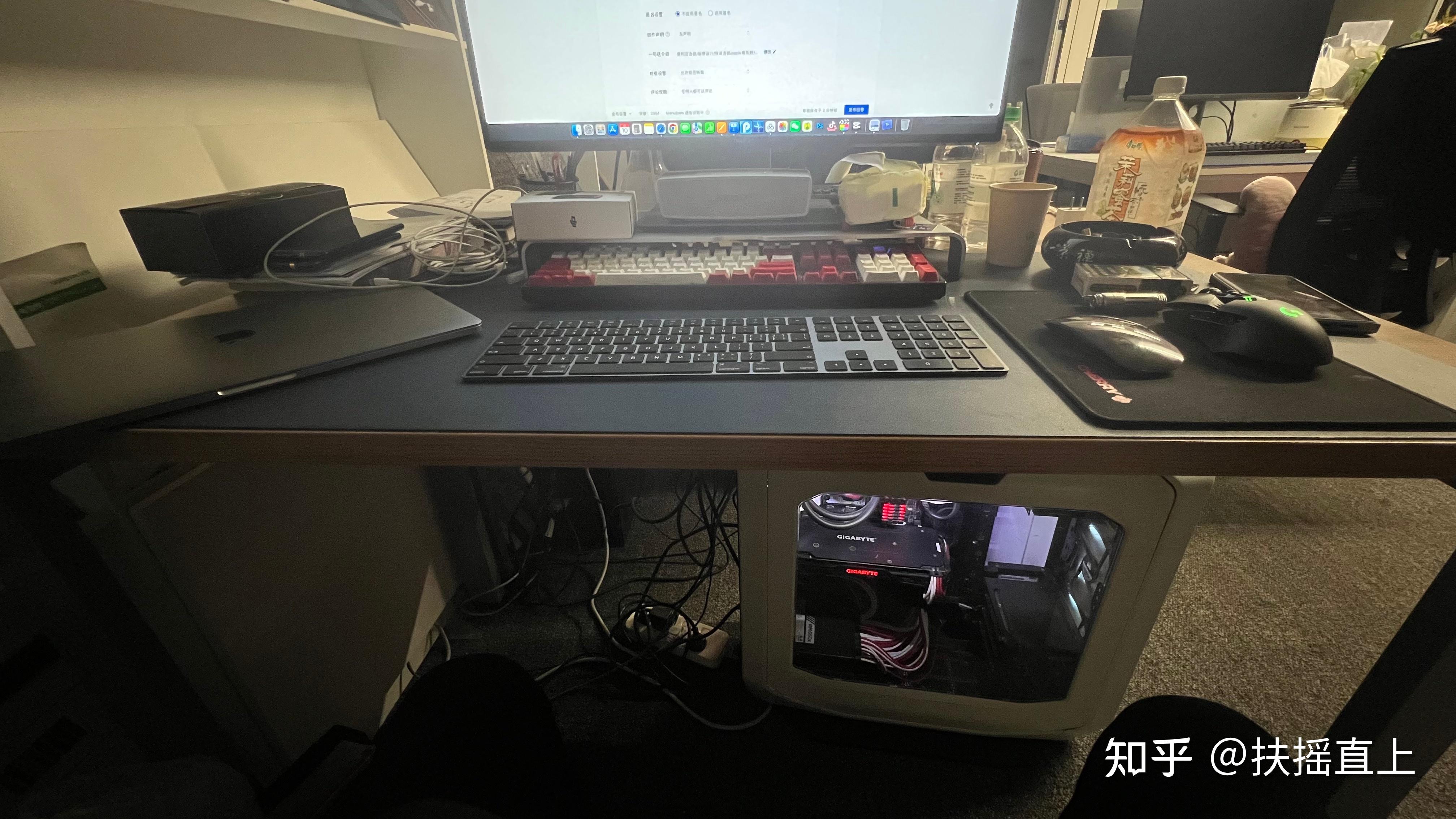 换了升降桌之后,北子电脑跟着换了位置,坐在桌前正对着空调出风口,那地方是真的暖和,我每次想去蹭会儿空调,坐不了多久就被北子赶走。北子每天晚上洗完澡,头也不吹,就坐在电脑前面玩玩游戏或者处理点工作,过一会儿头发也吹干了,估计这个冬天能省了不少吹风机费。