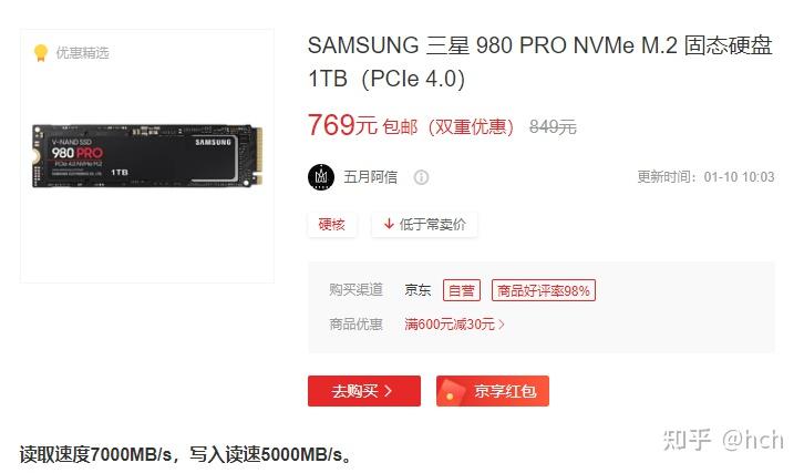 硬盘:三星980pro,韩国棒子出品,原材料大部分也是硅,没错和上面一样。