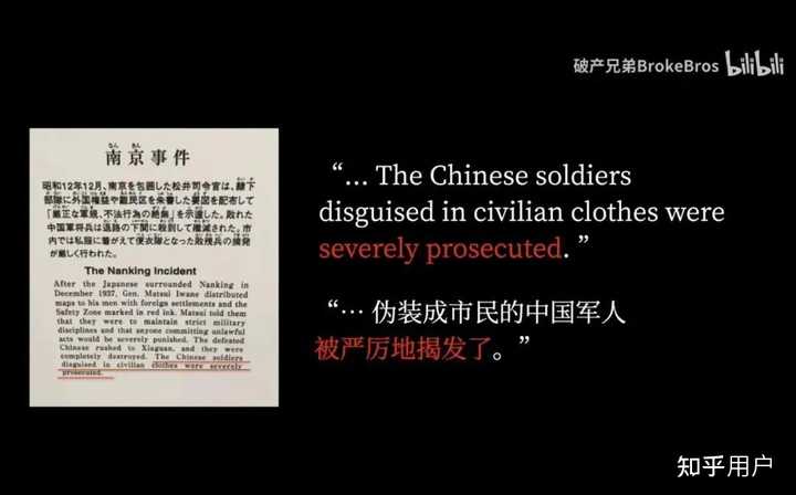 在日本各种历史教科书和媒体报道中,对于南京大屠杀有着诸多恬不知耻的内容 ——“南京大屠杀”常常被弱化为“南京事件”。“长达40多天的大屠杀”被故意扭曲为“中国军队顽强抵抗的后果”、“有部分军民死亡”。