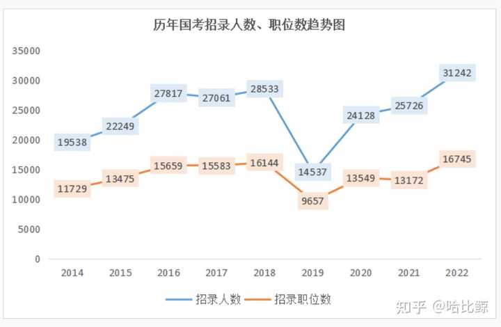 再看公务员考试,以国考为例,疫情以来,为了稳就业,公务员招录职位和人数基本都在稳步上升,但是岗位多了,竞争的人也更多。同样在疫情之下,更多社会人士投身考公大军~~~毕竟能抵御疫情稳定收入的,公务员肯定是首位!