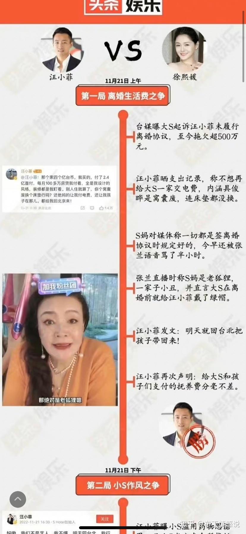 说到大S和汪小菲的恩怨,还要从11月21日开始说起。那天下午台湾媒体曝光大S向法院起诉汪小菲在离婚后并未按照判决的向他们母子支付抚养费。到11月为止已经拖欠了超500万元。