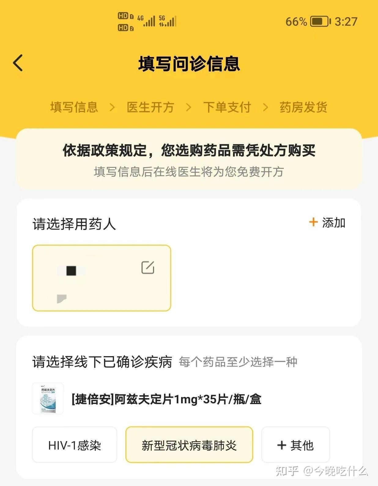 这是在美团买药上购买真实生物阿兹夫定需要选择的线下已确诊疾病,只有艾滋病和新冠肺炎两种(这张图只是演示购买流程,我没中招新冠)。