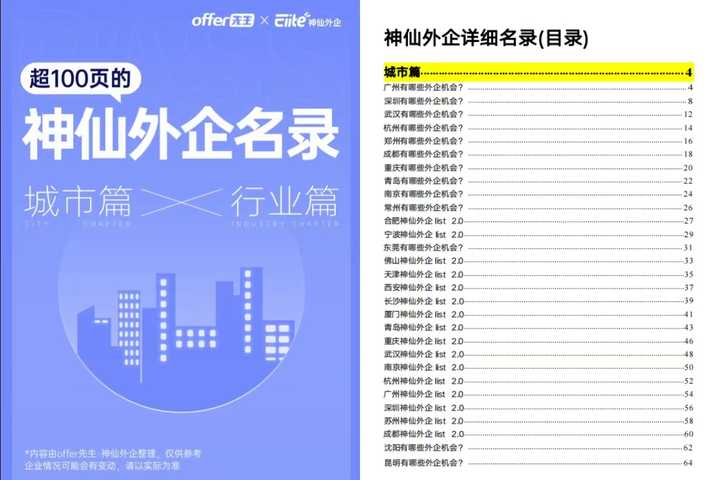 如果你想知道自己所在的城市有什么外企,目前有哪些福利待遇超好的外企,offer先生纯手工整理了这份【超100页的神仙外企名录】里面包含: