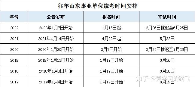 2020年~2022年因为疫情和机构改革原因,笔试时间都延期了。从上图不难看出山东事业单位统考的发布规律:基本上会在1月份发布公告,过完年的2月份或者3月份进行笔试。