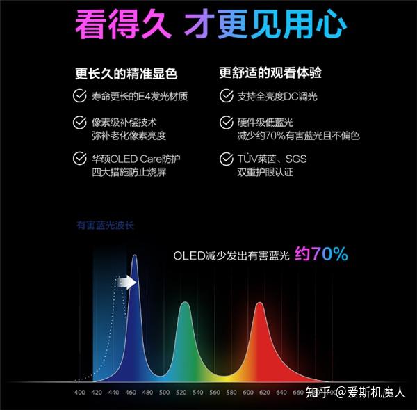 在备受关注的屏幕护眼方面,这块华硕好屏支持全亮度DC调光(HDR模式下),通过德国莱茵硬件低蓝光认证,全方位呵护双眼。至于OLED屏幕的烧屏问题,E4材质的寿命已经大大延长,华硕还采用像素级补偿技术、默认深色模式、自动隐藏任务栏、像素偏移等软硬件结合的手段最大程度防止烧屏,正常使用不会有问题。而且华硕推出的“华硕好屏,无忧换新”服务,2年内出现烧屏可免费更换新屏幕。