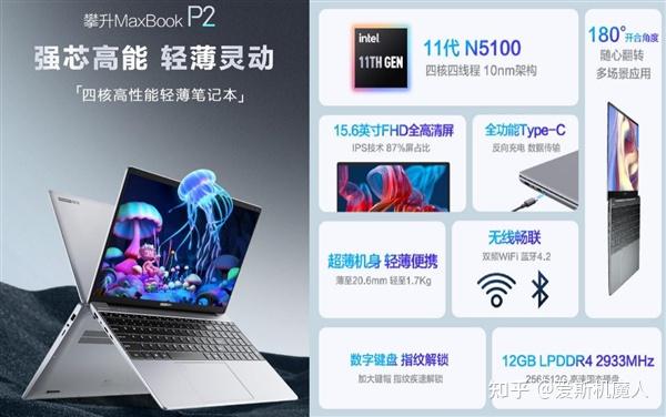 MaxBook P2 2022款相比前代提升不小,最大的变化就是处理器从N5095升级到第十一代赛扬N5100处理器,内存从8GB升级到了16GB。