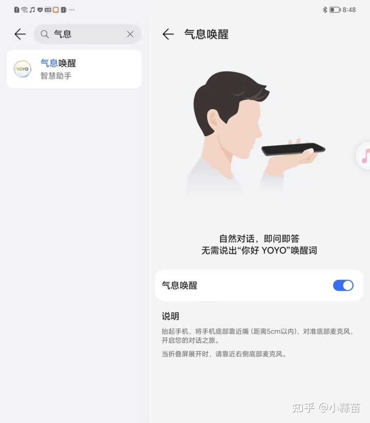如气息唤醒语音,嘴巴靠近手机无需唤醒词直接说话就能唤醒语音助手。