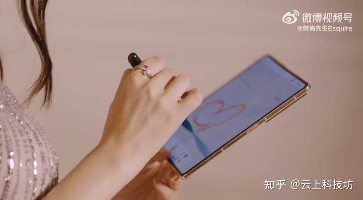 在《时尚先生》视频中看到了李沁拿着手写笔在展开的大屏上面画了一个爱心图案,荣耀是国内折叠屏手机赛道中第一个加入手写笔的品牌,荣耀Magic Vs至臻版配备Magic-Pen手写笔。