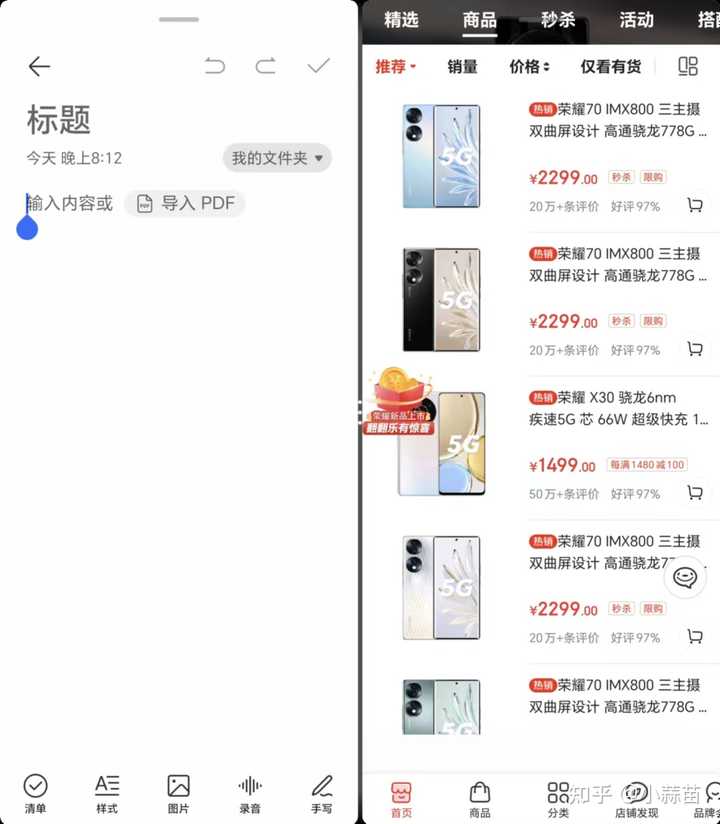 荣耀整体对于大屏的交互一直都做得不错,比如平行视界、分屏和悬窗等。
