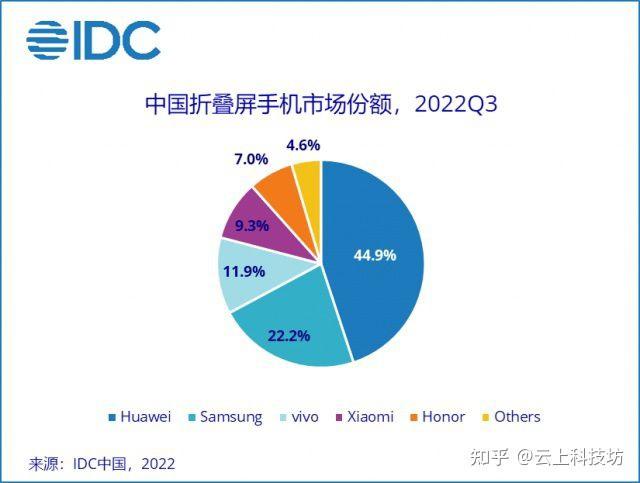 IDC的报告显示,华为依然占据国内折叠屏市场第一的位置,市场份额达44.9%;而荣耀占据7%。