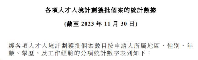 香港身份凭借着教育、税务、医疗、通行自由等一系列优势。截至11月30日,香港各类引进人才引进计划收到超20万宗,其中获批超12万宗。