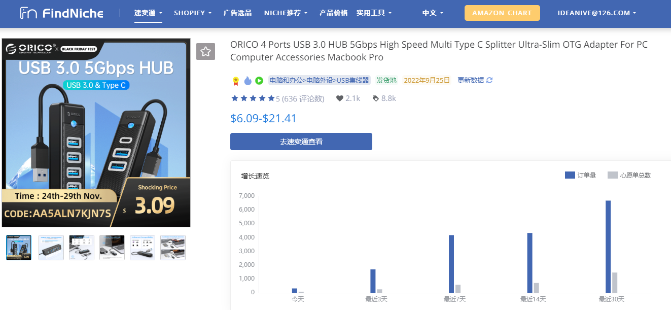 另外由于乌克兰无敌中心内早已人满为患,而需要充电服务的人却源源不断,所以除了能直接解决问题的充电宝销量暴涨之外,分线器、插线板的销量也同样水涨船高,根据FindNiche的统计数据,USB分线器的销量在14天内暴涨了197%,而插线板的销量同比翻了7倍,现在所有具备分线充电能力的电子配件在东欧的销量都出现了暴涨,没想到中国商家的海外跨境之路竟然被俄乌战争引入了高潮。
