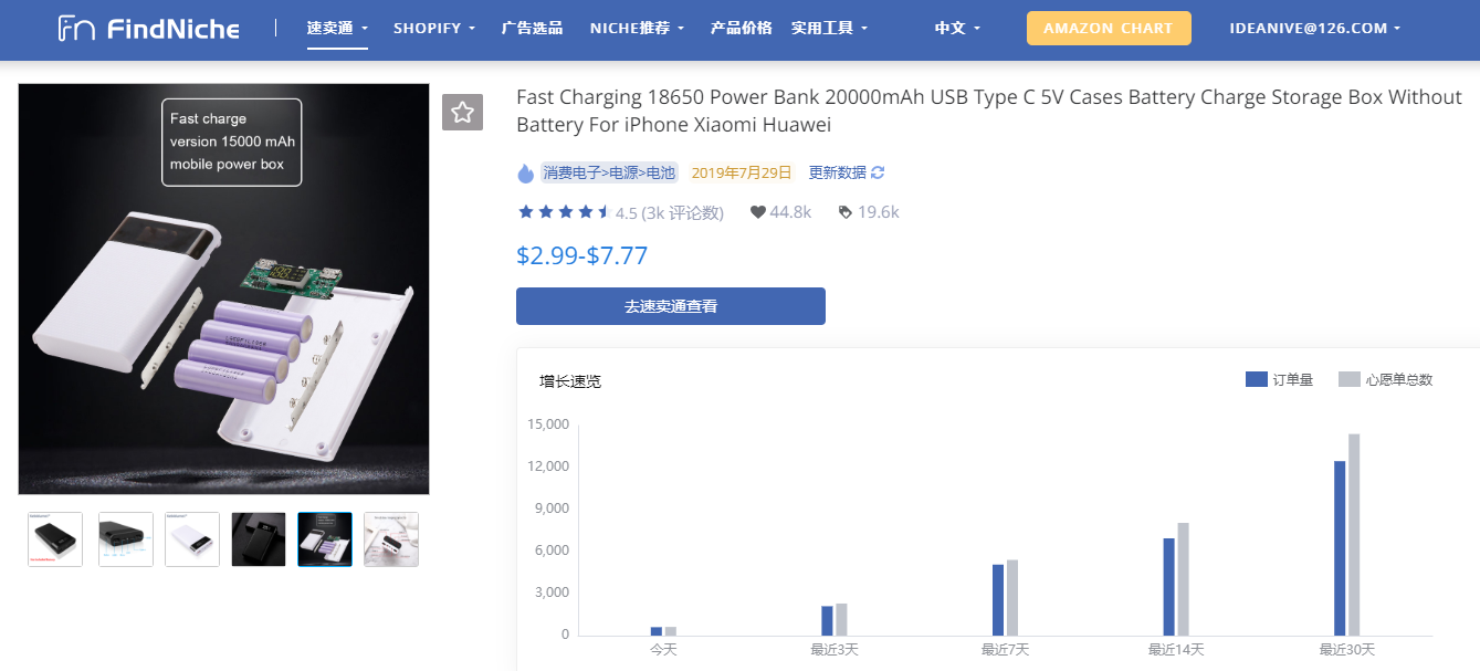 但由于僧多肉少,很多人并没有机会享受到这样的福利,于是来自中国的充电宝意外成了抢手货。根据跨境电商统计网站FindNiche的官方数据,中国充电宝的销量在过去30天内同比上涨了597%,而最近7天的销量更是同比暴涨了2582%。