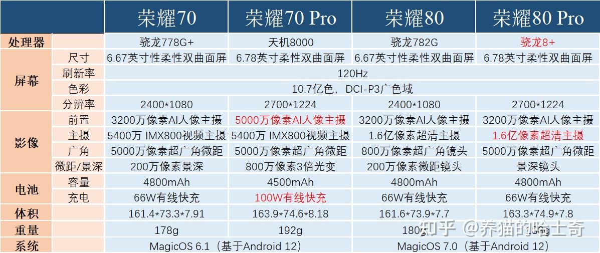 荣耀80系列推出了,新的一定比旧的好,就不考虑荣耀70系列了?并不是这样,下面我们将荣耀70/70 Pro以及荣耀80/80 Pro 列一个简单的表做对比。