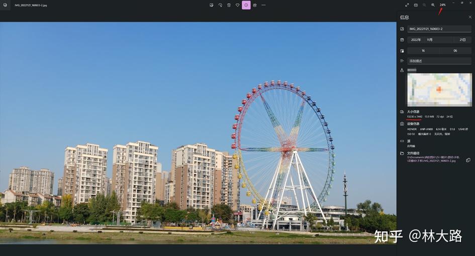 荣耀的这个高像素模式拍摄后会有一个较长的处理等待时间,当然,对于风光摄影来说,这个其实是可以接受的,而对于日常扫街拍摄,默认输出模式就够用了。