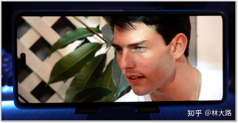 其次这块OLED屏幕支持10bit色深,所以可以达到10.7亿种色彩,不管是色彩丰富上还是明暗渐变上都能体现得更自然, 结合OLED支持更高亮度的特性,我们以阿汤哥的老电影为例,如下实拍效果图: