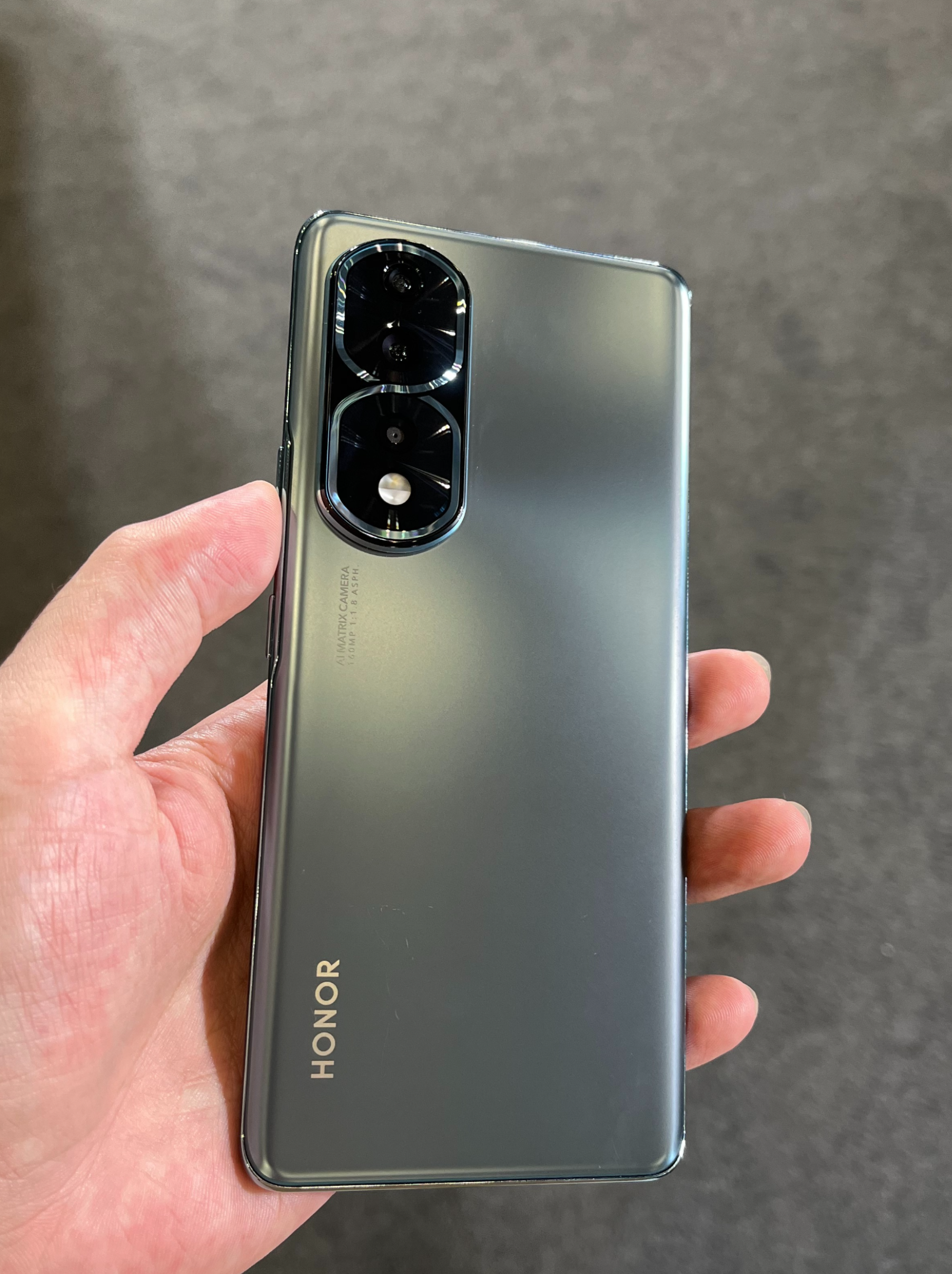 整个机身的腰线贴合镜头特有的 8字辨识度非常高。除HONOR Logo外,镜头下也有标识: