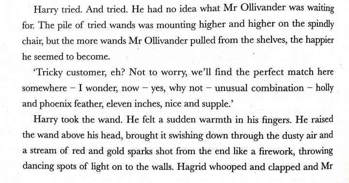 不符合的特点:如果哈利不是被选中的男孩,凤凰羽毛的特点与哈利本身性格并没有多少契合点。