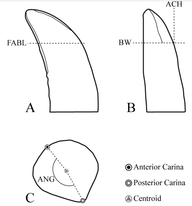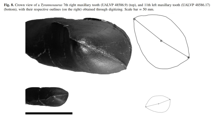 - ^ReichelMiriam. 2012. The variation of angles between anterior and posterior carinae of tyrannosaurid teeth. Canadian Journal of Earth Sciences. 49(3): 477-491. https://doi.org/10.1139/e11-068