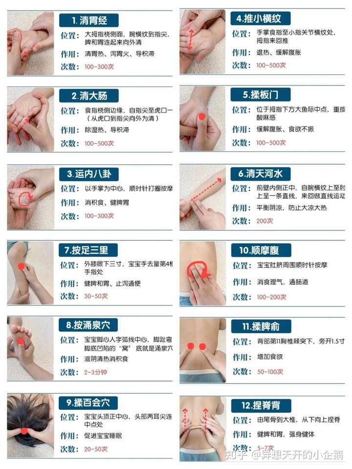 可以在晚上睡觉前给孩子弄一下,手法也很简单,就在下面图片里。