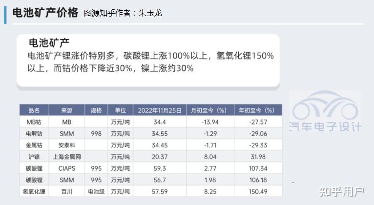 当前动力电池产业链上游价格太高了,价格压力直接传导至整车厂,上游材料涨价太厉害,源头是海外的矿厂。而动力电池成本占到汽车总成本的40%、50%、60%,并且还在不断增加。