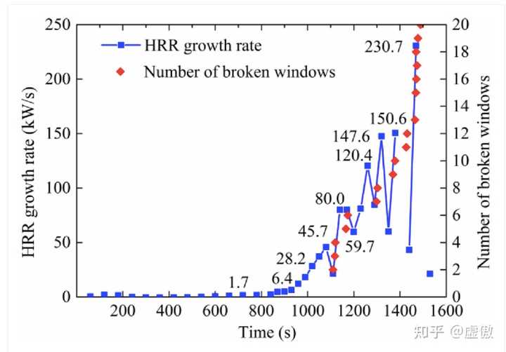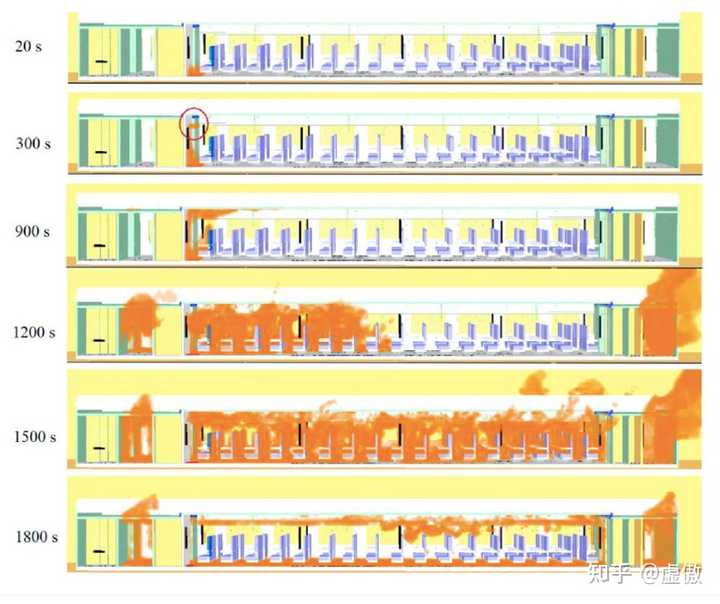 热释放速率HRR同窗户破裂数量随着时间同比增长 火势蔓延示意图 日本虽然有吸烟车厢,但日本国土面积较小,每段行程都不会太长,所以相对中国动辄几个小时的营运时长,日本乘客的吸烟频率会相对低很多,事故可能性也就大幅降低了。