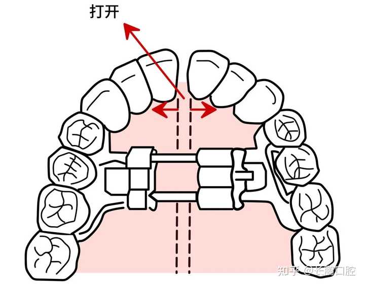 一般对应的是上颌,通过特定的扩弓器逐步将上颌的腭中缝扩宽,促使中缝的结缔组织被牵张后产生新的骨组织,从而增加基骨和牙弓的宽度。