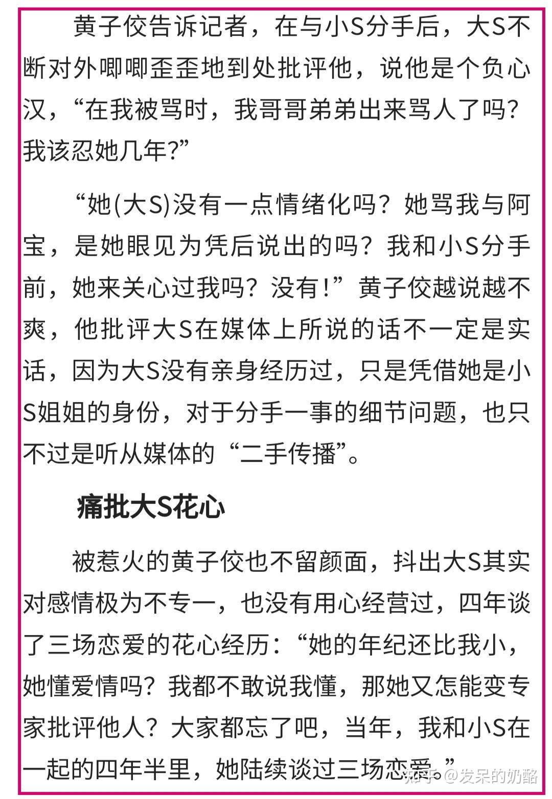 还有大S,黄子佼对这位无缘的大姨子颇有微词,称大S对妹妹和自己的事情唧唧歪歪,根本不了解内情。