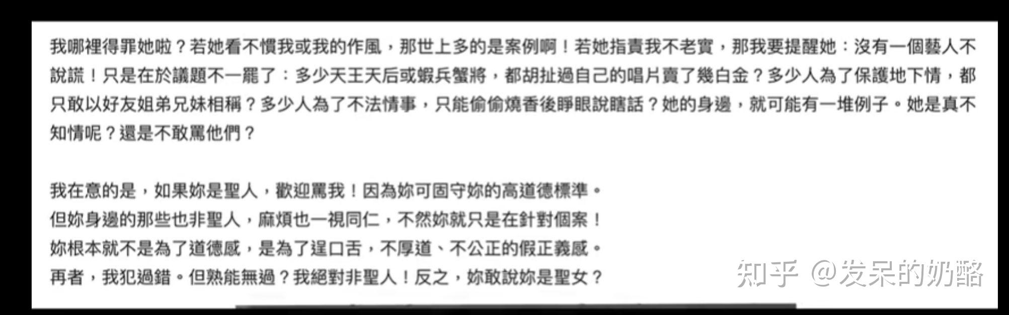 讲真,这一点,字母姐妹做的很对。一个男人可以变心、可以分手,正式分开之前为自己的劈腿做出忏悔和道歉、安抚好被伤害的前任是基本修养和礼貌。黄先生这一点的确没做好,他的分手是和曾小姐在一起后在自己的节目里说出来的,不仅对旧爱毫无愧疚,还十分袒护新欢的不道德。