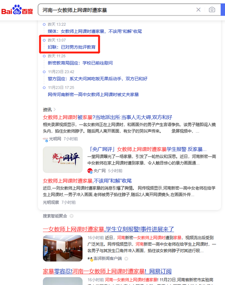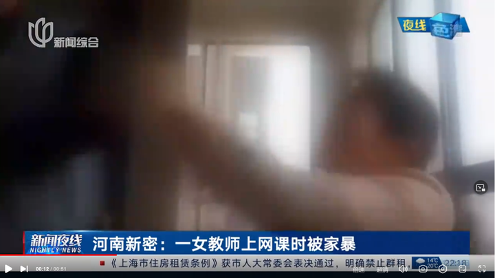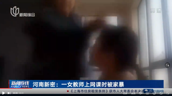 11月21日,网传视频河南新密一高中女老师,在给学生上网课时被家暴。画面显示老师在上网课期间一男子冲入画面老师被男子掐住脖子,随后2人离开网课镜头。11月23日...