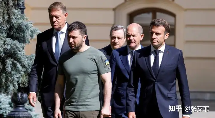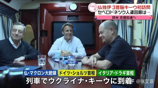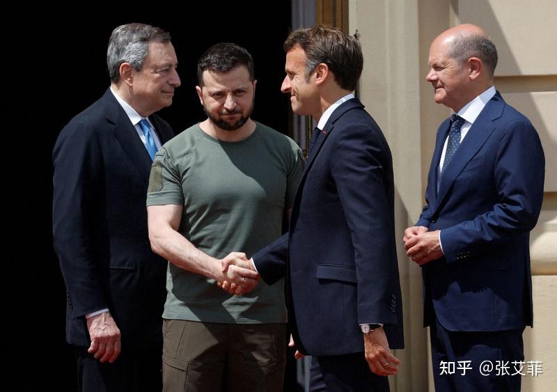 我把之前的抓马再放一下。说法国总统马克龙、德国总理舒尔茨、意大利总理德拉吉6月16号,访问乌克兰首都基辅,并与总统泽连斯基会谈。