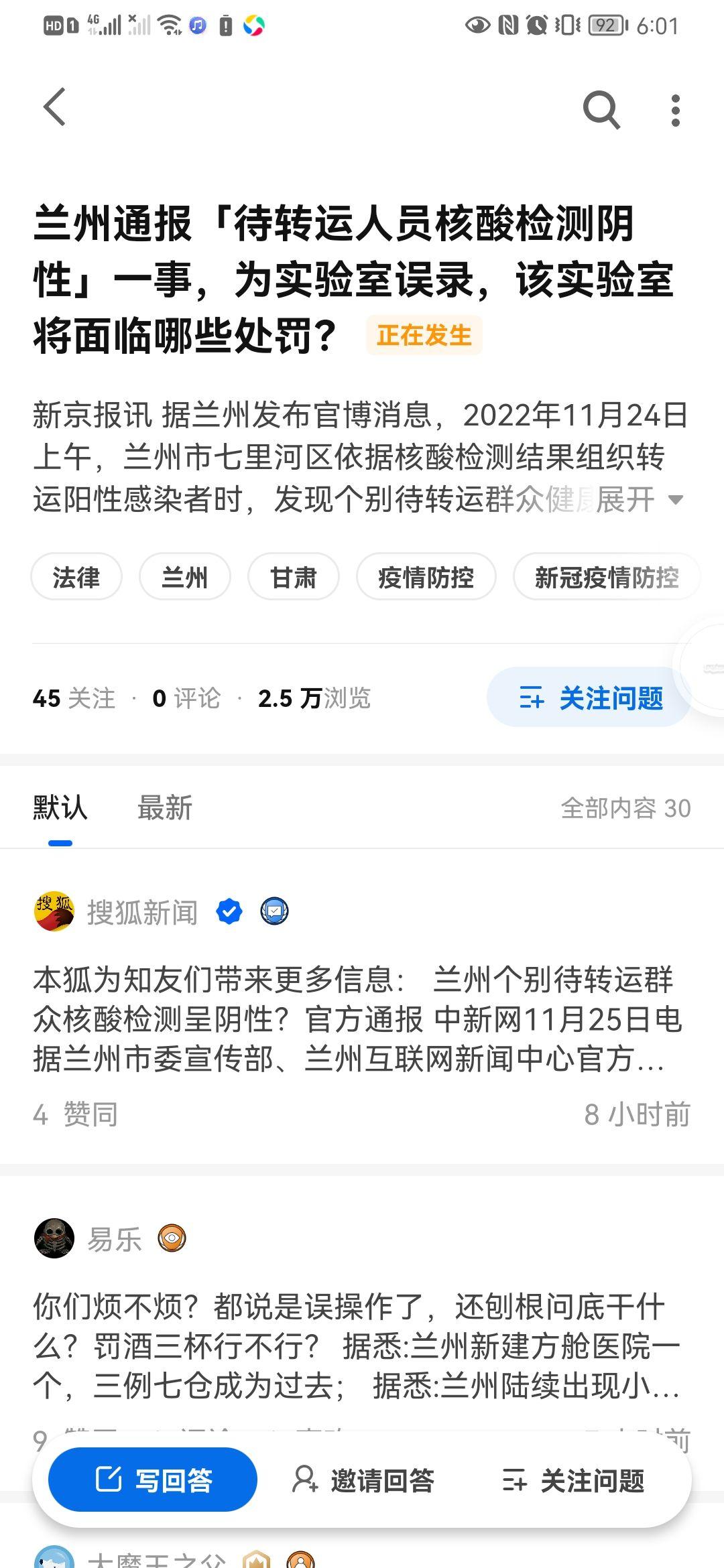 别让疫情毁了正常生活。 别骂我了,我只是看到吴亦凡坐牢能上热榜,中纪委对赌球发文能上热榜,小女孩三万元买馕能上热榜,但兰州核酸“造假”无人问津感到难过而已。 甘肃疫情快半年了吧 编辑于 2022-11-25 18:04・IP 属地甘肃 真诚赞赏,手留余香 赞赏 还没有人赞赏,快来当第一个赞赏的人吧! 赞同 402 条评论分享 收藏喜欢 收起