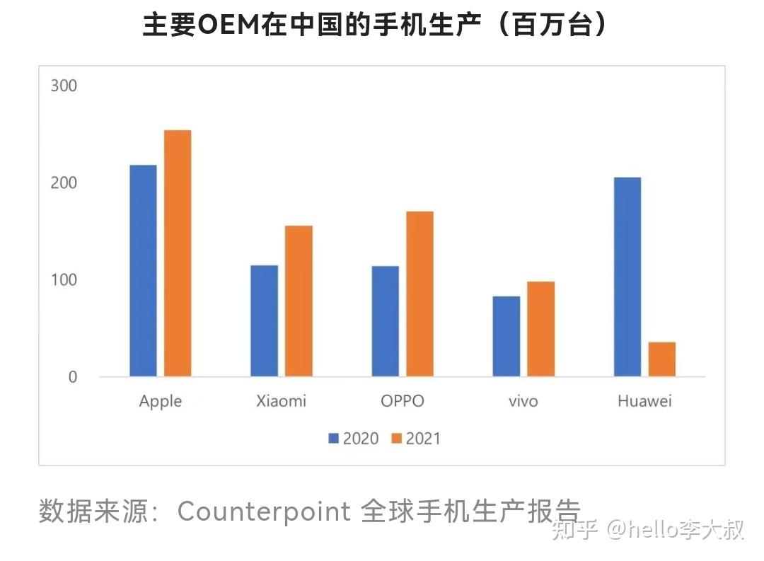- 华为:20年尚可跟三星一较高低,21年直接腰斩;